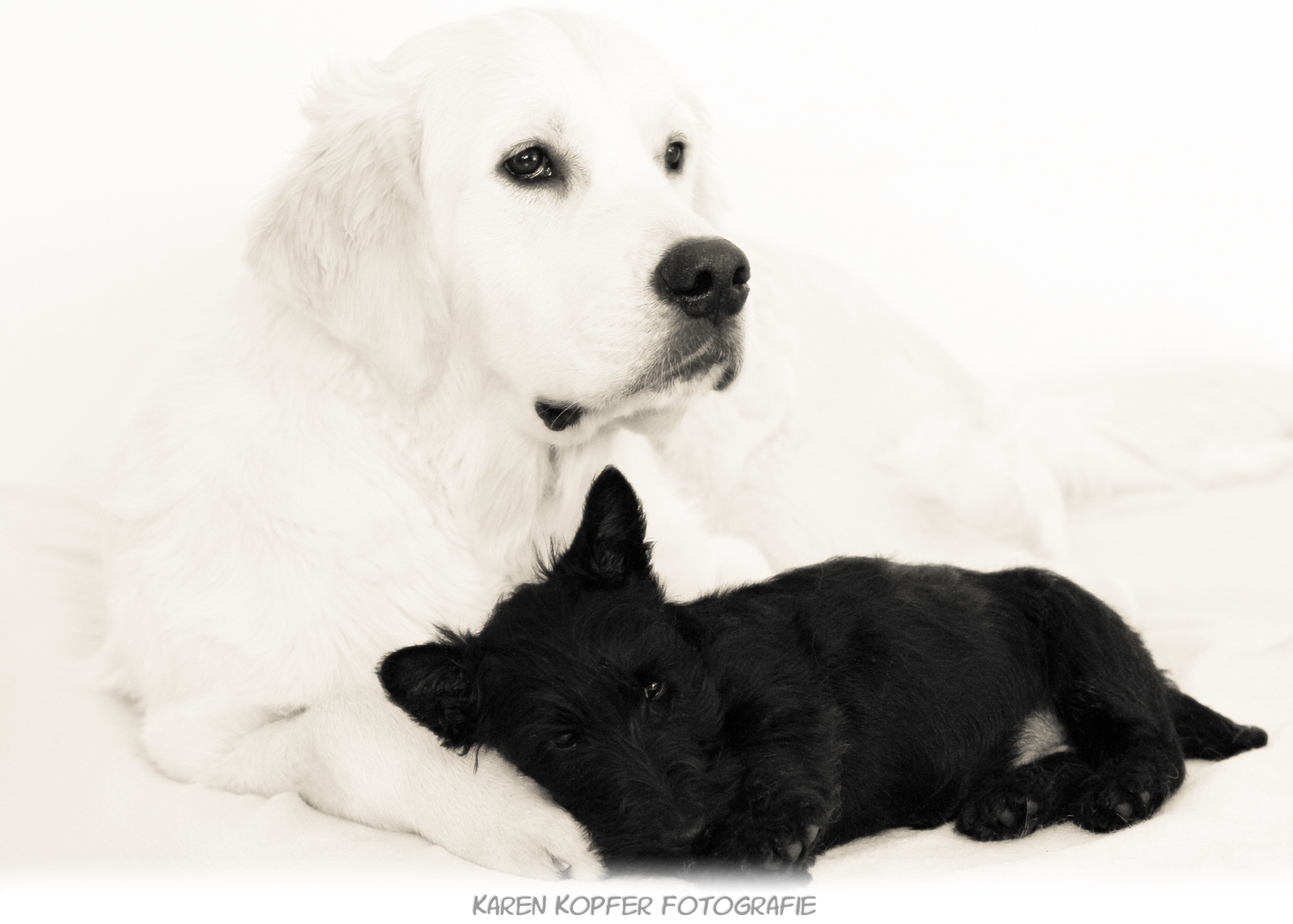 Hundefotografie Black and White Veröffentlicht von Jeppedys am 24/11/201316/11/2016 Golden Retriever fotografiert mit Scottish Terrier It Doesn’t Matter If You’re Black Or White